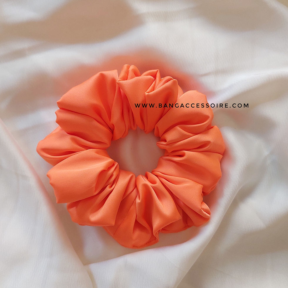 Set Chouchou et Bandeau skinny couleur néon orange ( Satin de soies )